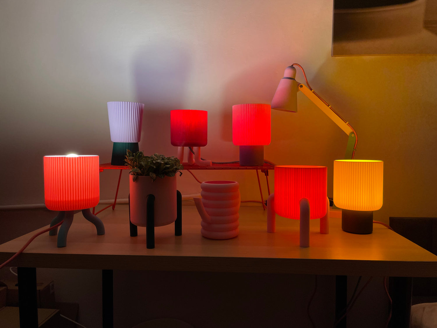 Nemáme zatím moc zkušeností s výrobou stropních svítidel, protože pro umístění v prostoru již vyžadují určitou míru odbornosti. (Ať už jde o technické, bezpečnostní, nebo různé prostorově funkční řešení.) Proto navrhujeme primárně stolní lampičky. (Ať už do kaváren, kanceláří, nebo hotelových pokojů)